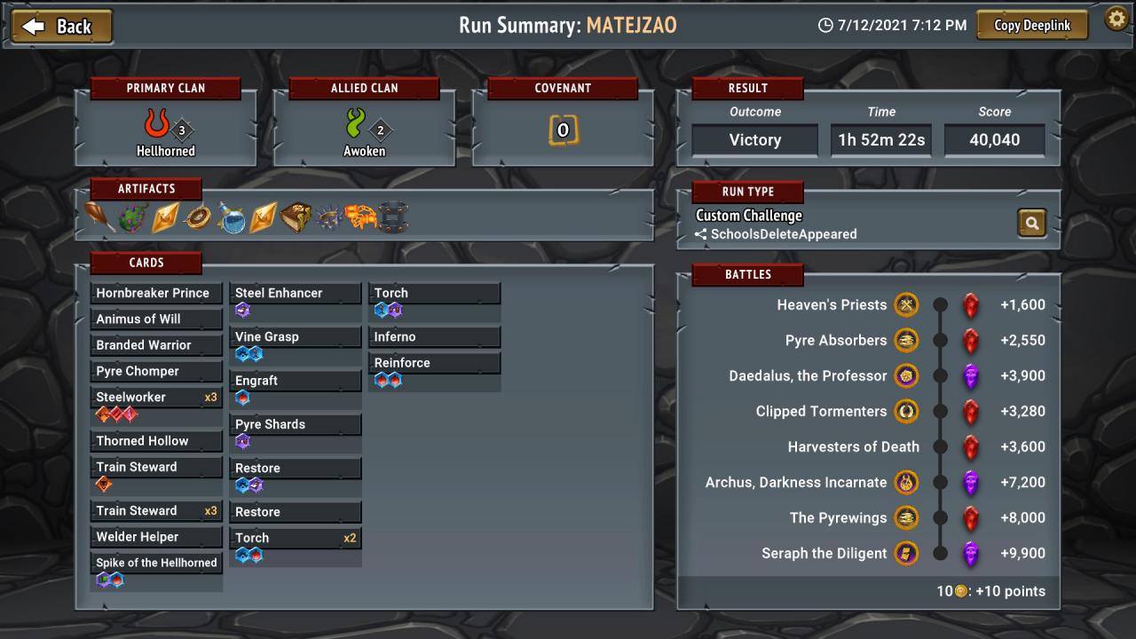 Hellhorned Hornbreaker + Awoken Restoresmonstertrain://challenge/SchoolsDeleteAppeared