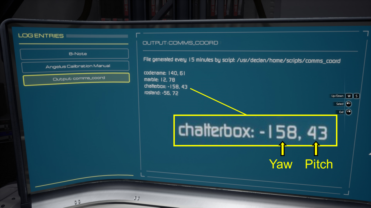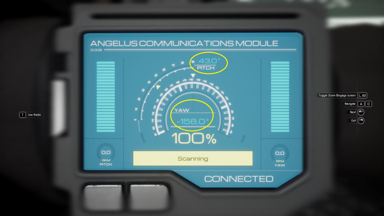 You need the numbers given at “chatterbox”. The first is the yaw and the second the pitch you will need to align the satellite dish to.