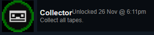 b) Pick up the tape recorder. Then pick up tapes 1 and 2. (If you are going for “Run, Baby, Run!” achievement, you can skip step b, c, d and just pick up all the tapes.)