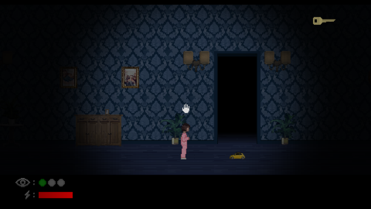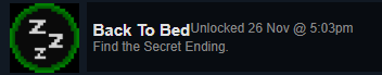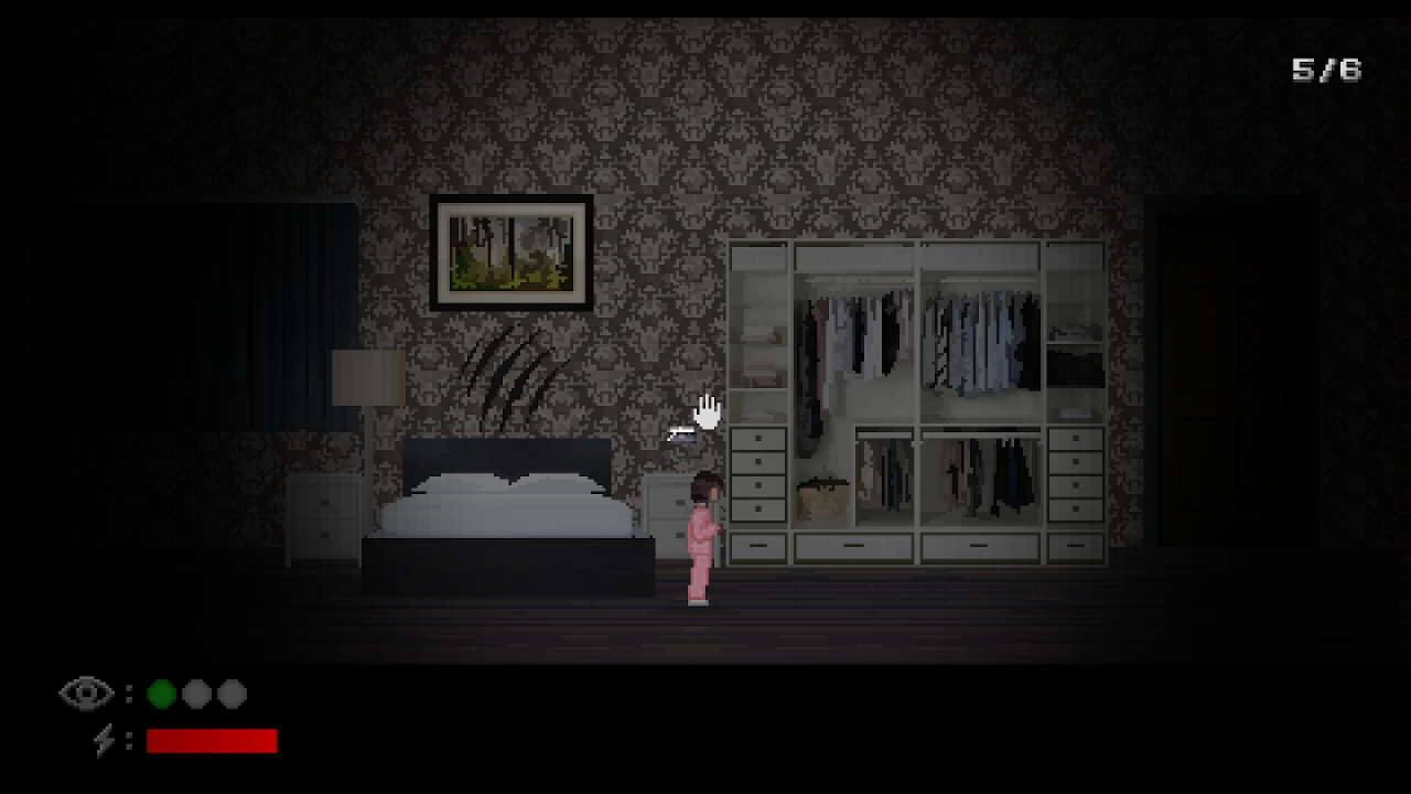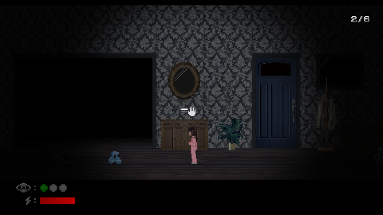 1) First goal is to go to your parent’s room, keep moving to right and enter the door at the end of the path. You get a new task to go back to bed. Move back to bed and ignore “Task: leave the house” for the first ending.
