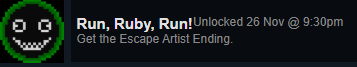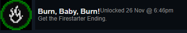2-3) I’m going to explain how to get “Burn, Baby, Burn!” and “Run, Baby, Run!” at the same time, if you don’t want to burn the house just skip picking up liquid, matches and burning the rug steps.