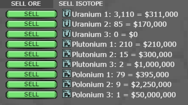 - Sell isotopes. Many times when you need isotopes for upgrades, you’ll have just sold them and are going to have to wait a while to get them back.