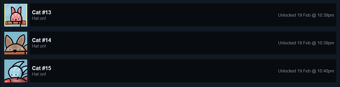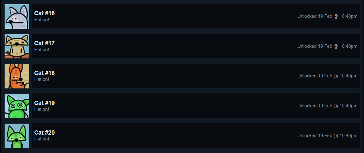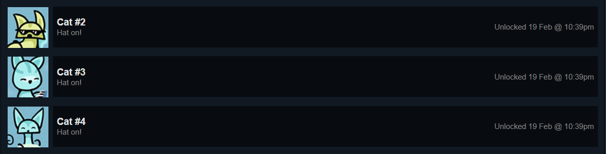 When you have put all hats on cats then the game ended with the credits and snow. This will give you the final achievement: Winter