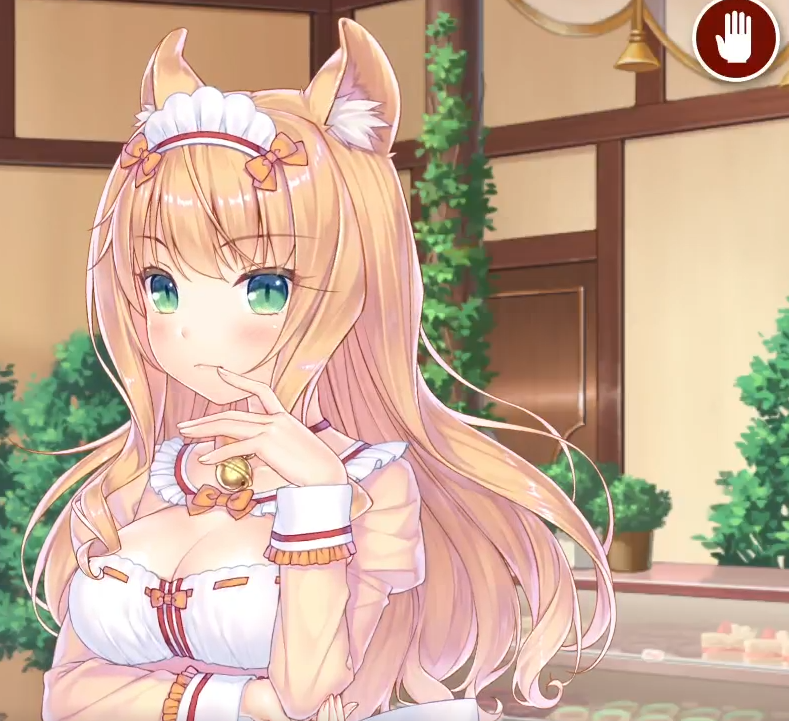 At the top right, we see a hand, when the character finishes speaking, we press on it and move the chest or stomach of the kitty girl to the head
