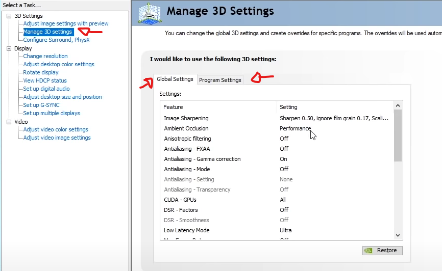 2- Select “Global Settings” or “Program Settings” if you want to change only for New World