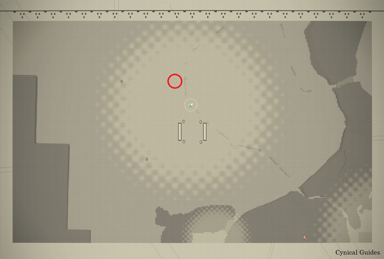 At the bottom of the valley, head towards the flooded section & take a right up the sandy bank where all the Machine corpses are. Along the rock wall will be two Chests. One can only be opened by 9S in Route B, but the other Chest beside it is unlocked. Open the Chest & collect the Phoenix Dagger.