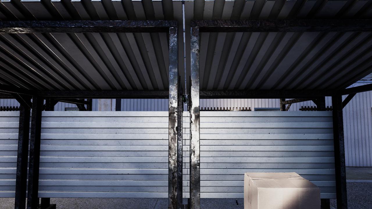 In shelter 1, to the left of the fallen bicycle.