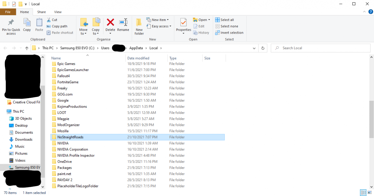 After that, scroll through the folder until you see the “NoStraightRoads” folder.