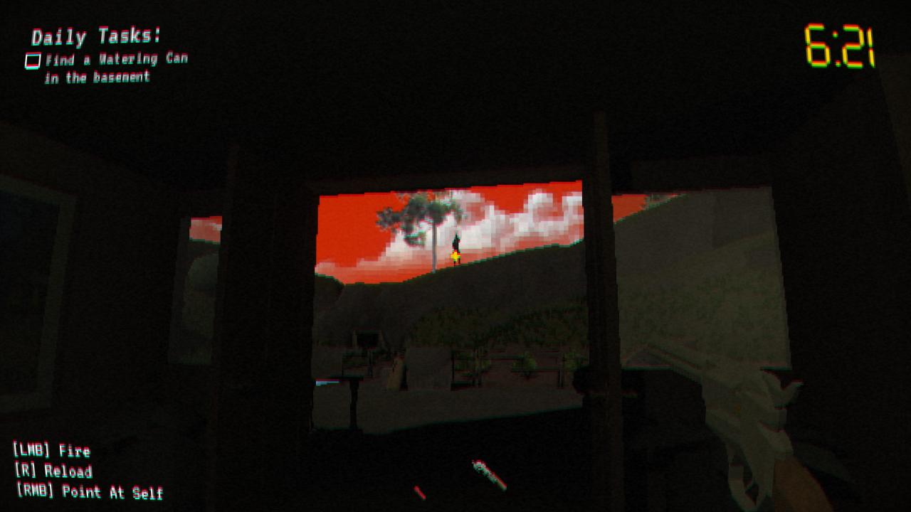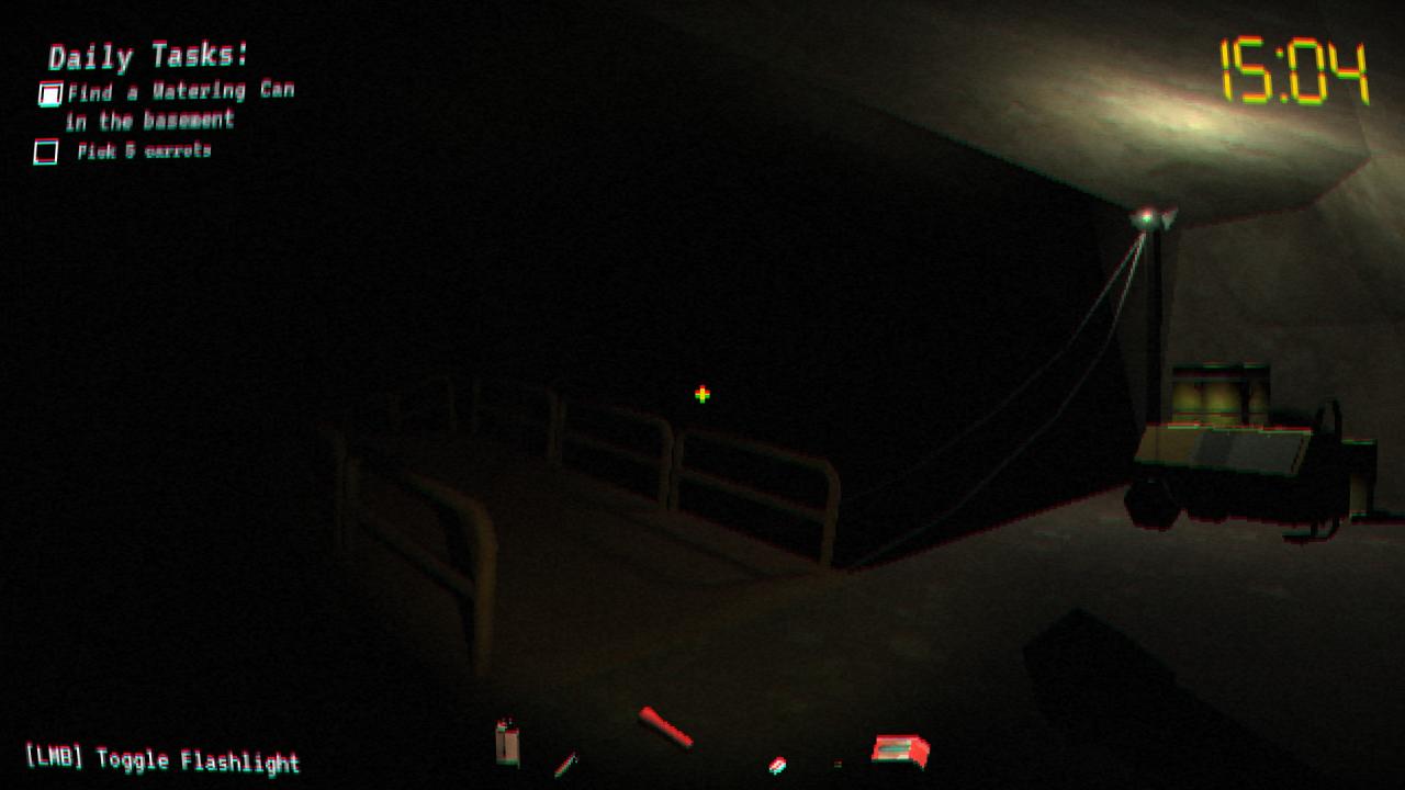 A day at the farm starts with the alarm at 6:00 AM and ends when the on-screen clock reaches 10:00 PM. Your unchanging chores are: getting the watering can from the basement and filling it at the pond, feeding the horses in the barn with carrots picked from the farm and planting then watering seeds to replace the picks. Completing the chores advances the clock to 10:00 PM at an instant. Still, the day ends sooner or later whether the chores are done or not. You may opt to keep doing your chores – yet, your life does not change by a bit unless you step out of the line.