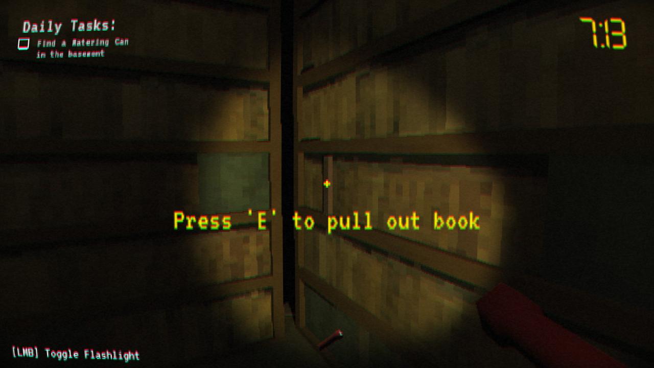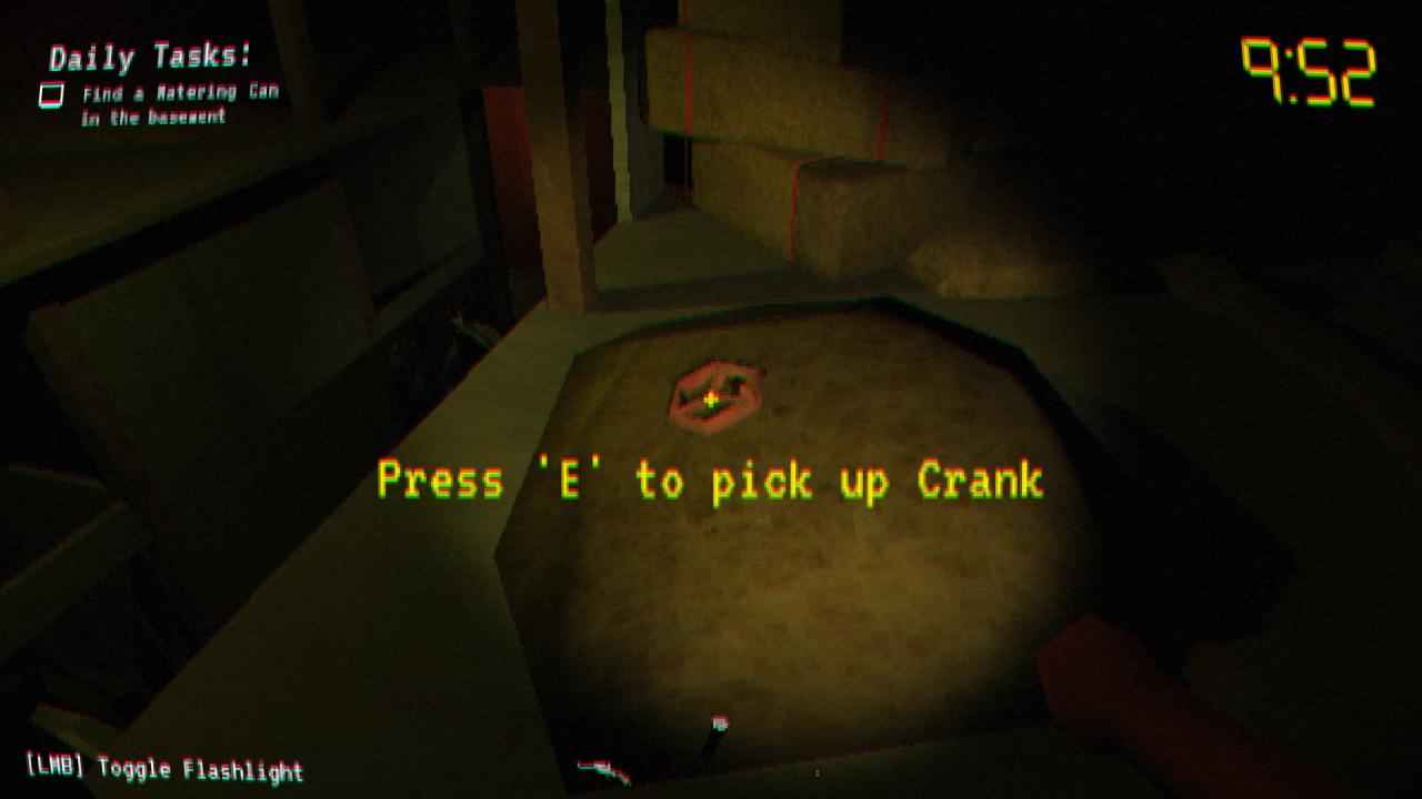 Look for a book sticking out from the row on the shelves to the back of the farmhouse basement and pull it out to reveal a hidden compartment. Get the keycard found inside, as well as the crank from the barn. Continue into the tunnels and go through the electronically locked door. Once you reach the raised bridge, drop down to the area below.