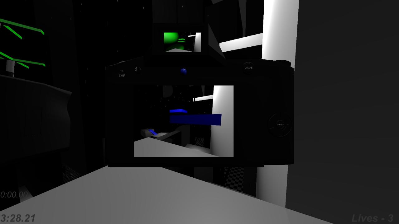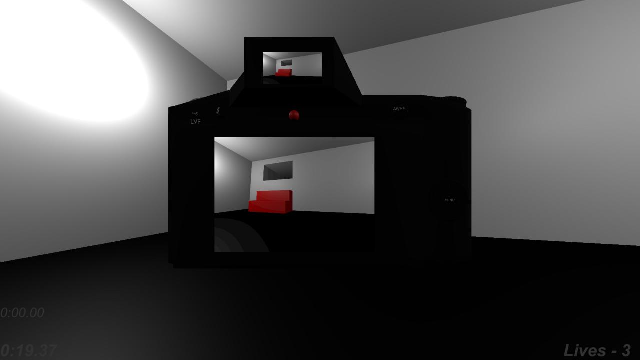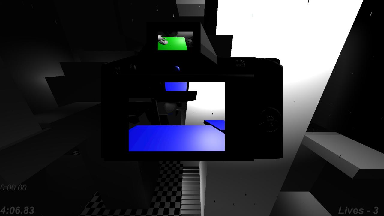The game consists of 3 levels, all varying in length with 3 being the longest and most challenging. You gain an additional camera with each level, increasing the difficulty. If you don’t understand the primary mechanic of the game, it’s that anything in the camera’s view (even through objects) exists, but if not in view does not. To stand on a platform you or the camera must be looking at it. This guide mostly focuses on the more challenging parts of the game in which either some tricky platforming or confusing puzzles may arise.