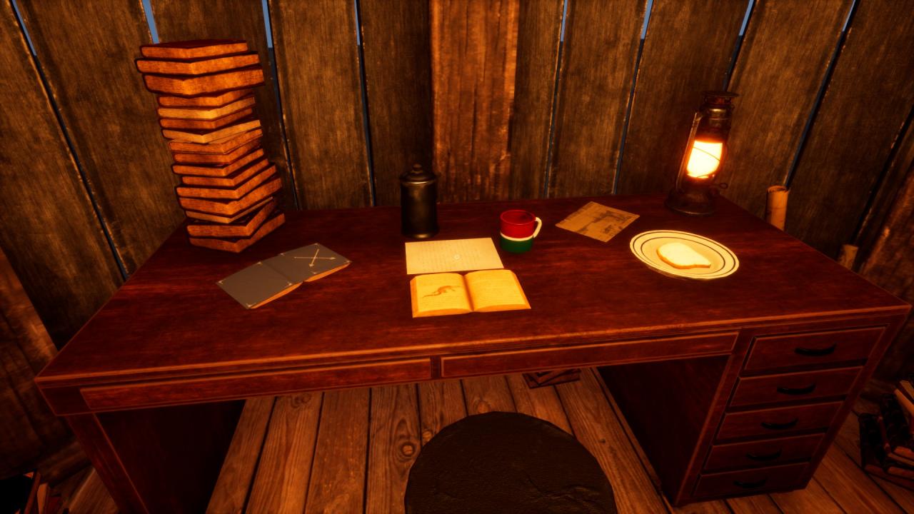 04. after unlocking the door and entering the cabin, it’s on the table.