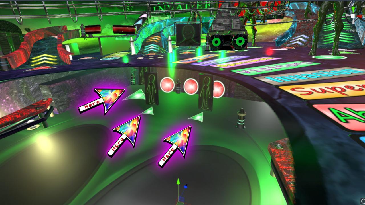 This is the mission that is activated during multiball, and has a timer of 31 seconds to complete. To successfully complete this mission you must hit all three ramps that are shown in the photo one time each. If you manage to do this before time runs out then congrats you just completed the mission. Notice the “here” arrows in the photo are pointing to the arrow LEDs that will light up during this mission, if the arrow is lit up you need to hit that ramp!