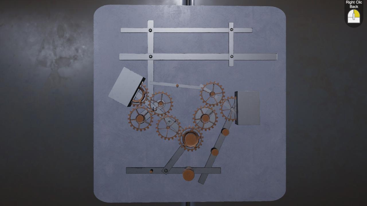 - Solve first the screws puzzle, you need another gear to access the puzzle.