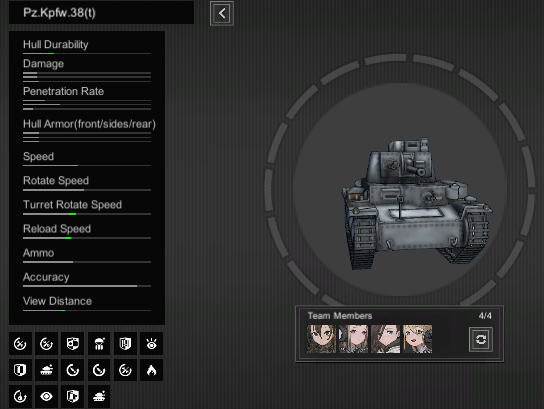 A full crew equipped on the Panzer 38(t) and their effects (seen on the left)