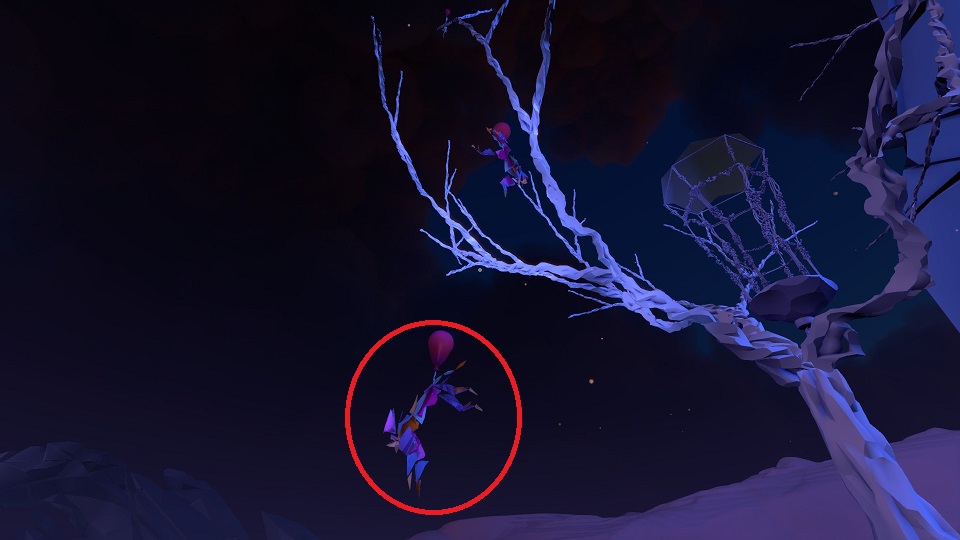 At the end of Chapter 5.3 once all Papyvorus gathered at the tree there will be red balloons on the tree and these will fall down. Use one of it on a predator for the achievement. Timestamp on the video: 1:05:45-1:06:10