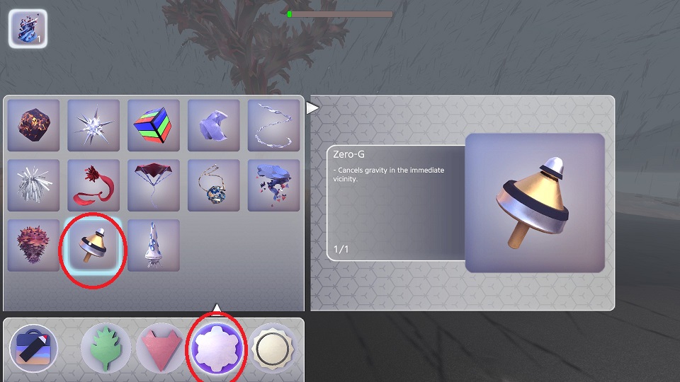 Start a sandbox game, open the item placement panel. Select Zero-G item and place it.