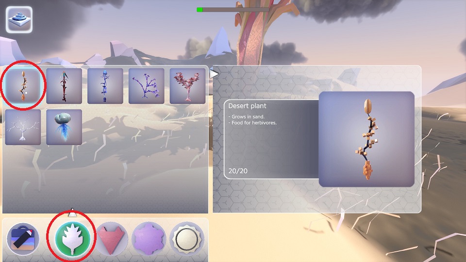 First plant a desert plant. If you have any animal placed on the map remove them as they might consume the plant.
