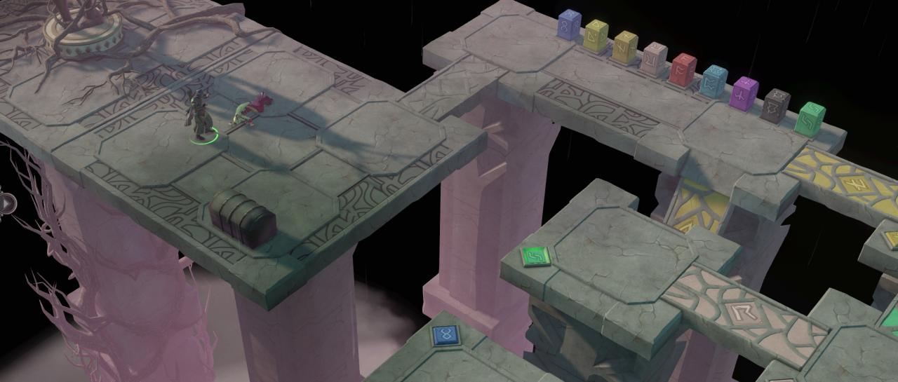 This puzzle is all about pressing colored switches to raise & lower bridges. Pressing a switch will raise and lower the matching bridge(s), as well as raise and lower the colored pillars located at the final bridge. The final bridge requires all colored pillars to be raised.