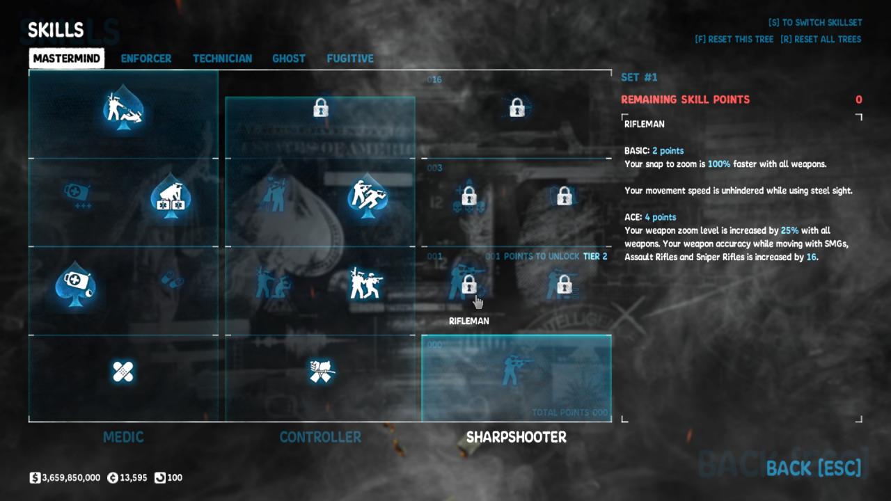 These skills are somewhat vital for your damage output. Assault Rifles are often weak in comparison to LMGs, so these skills will help beef them up. Steady Grip aced to boost accuracy and stability, Surefire aced so you don’t have to aim for the head as much, and Body Expertise aced to get 90% of the headshot bonus with bodyshots.