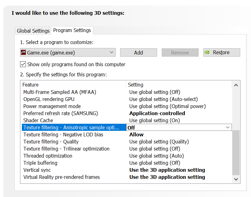 5. Go through every single setting, and select “application controlled” if there’s an option for it