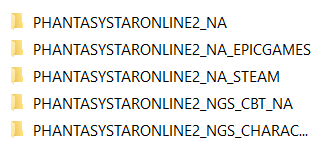 In that SEGA folder will be a folder for EVERY PC version of PSO2 you may have played. As I’ve brought the game up on Steam, Windows 10, and Epic, I have those in addition to the NGS Closed Beta and Character Creator Benchmark.