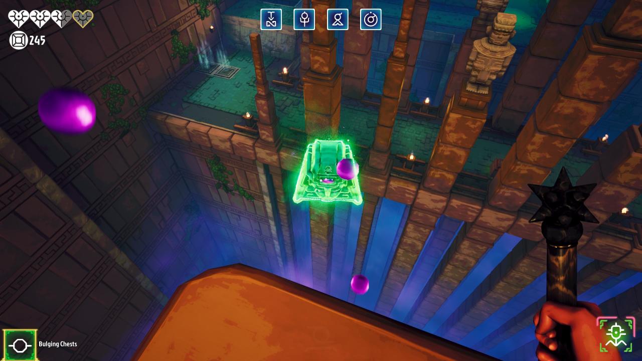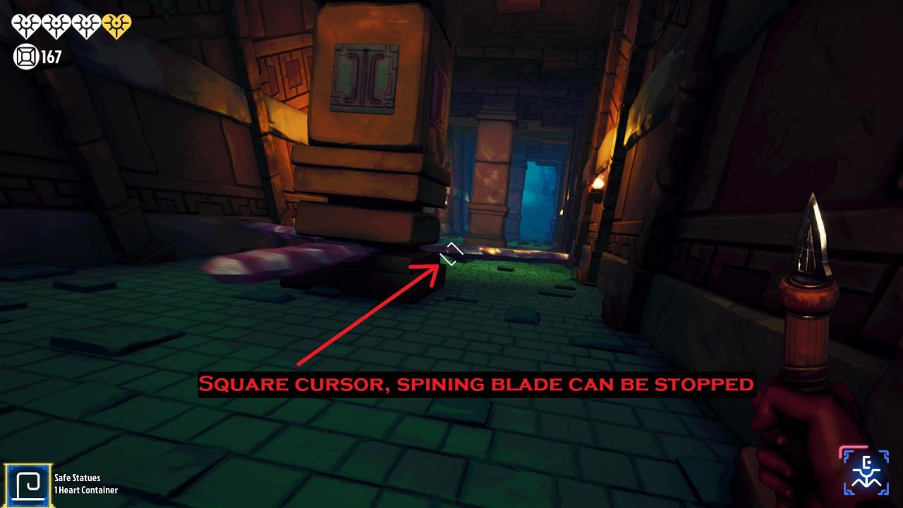 • Dart statues in tier 2+ temples (not wall-mounted dart shooters) can be whipped to make them spin around and not shoot for a short duration.