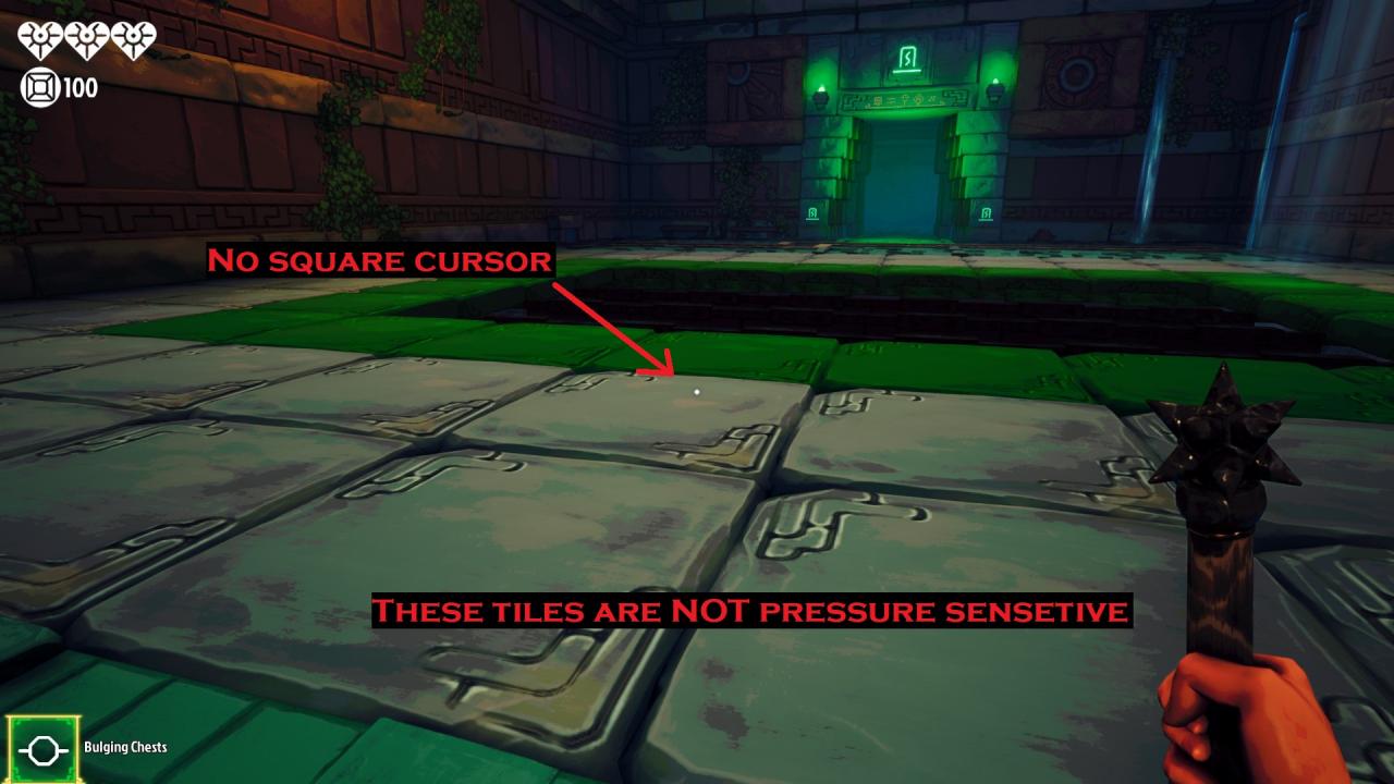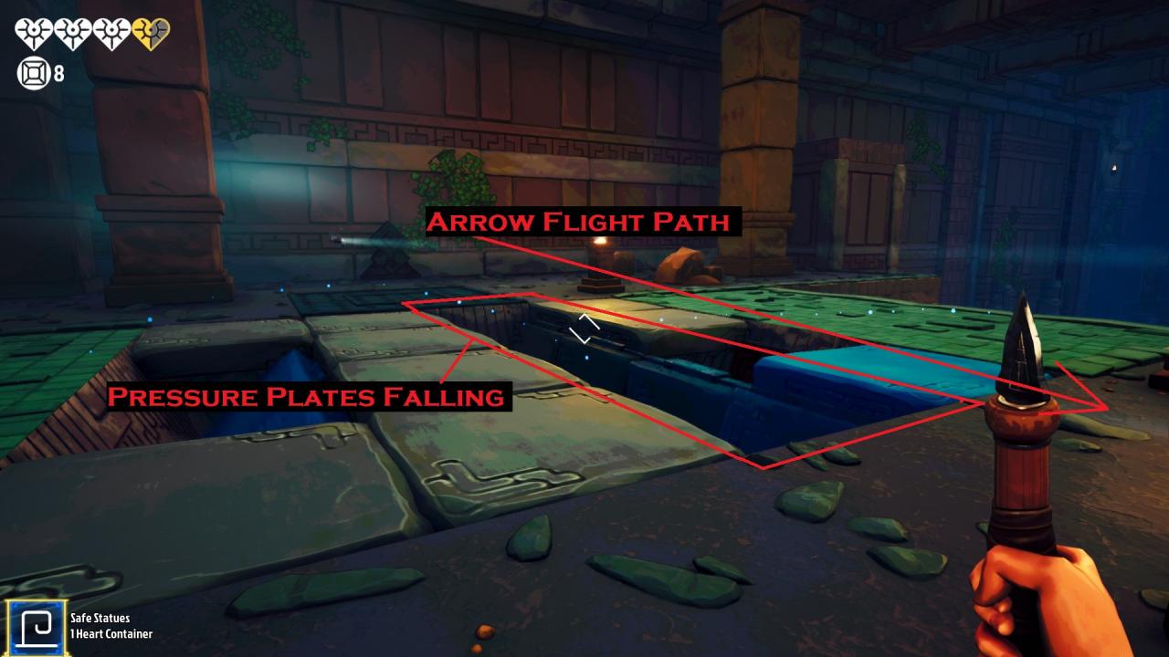 • Arrows (like those from wall-mounted traps) will cause pressure plates to drop, pictured below.