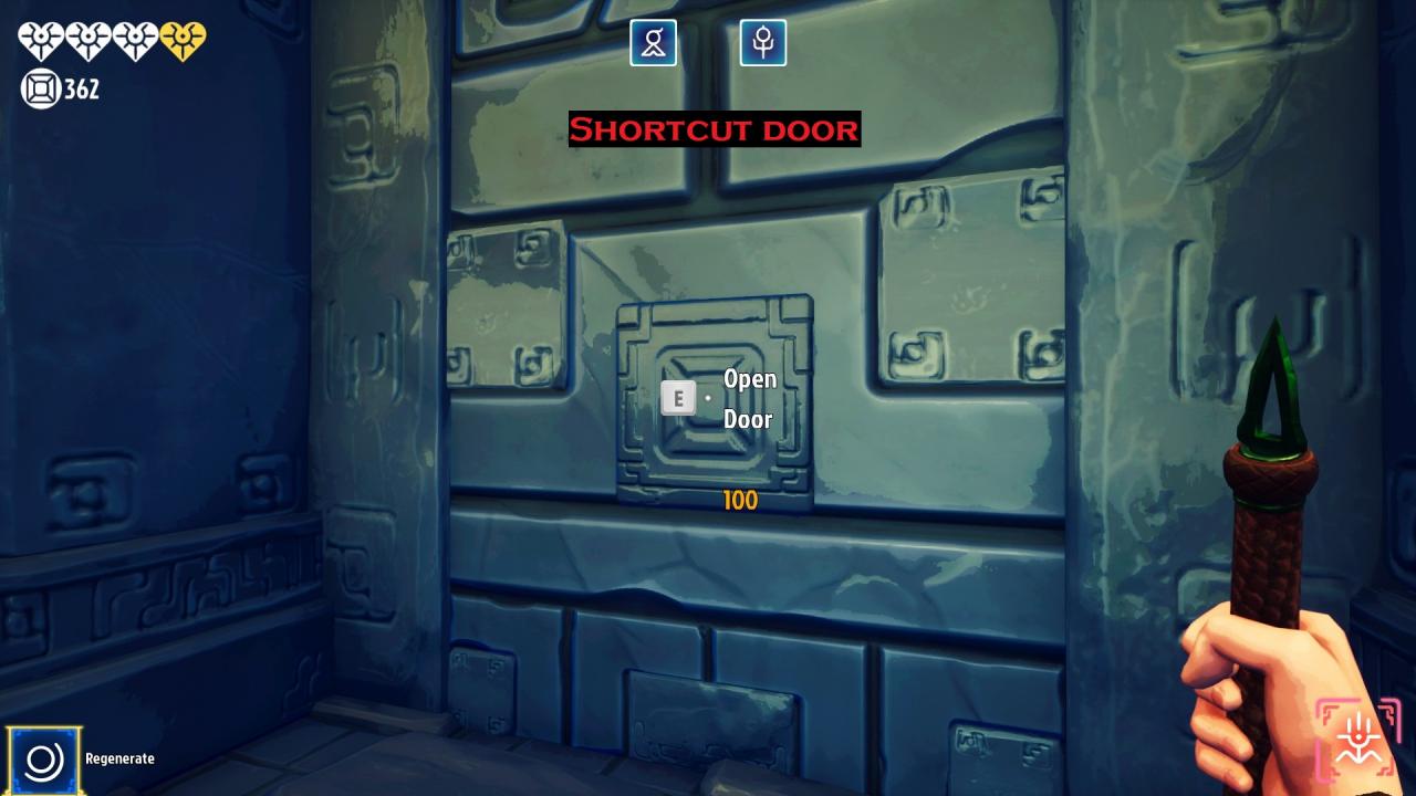 • Don’t buy doors early. Early in a run, a shortcut door is almost as expensive as a new blessing (100 for a door vs 150 for a new blessing). Save your money for blessings. Later in a run (when blessings cost 500+) it makes much more sense to buy doors, especially ones that let you pass a particularly dangerous room, because to replace a lost heart would cost 500, but the door only costs 100.