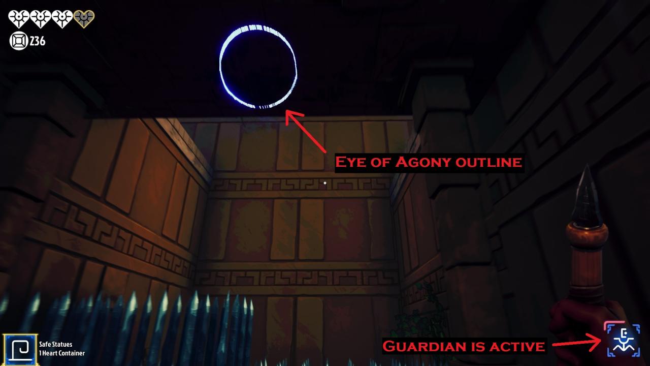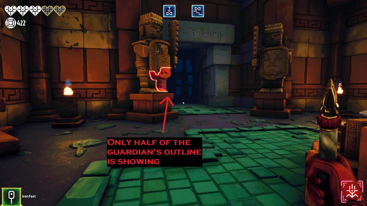 • The guardian outline doesn’t show properly through some textures, like door shadows: