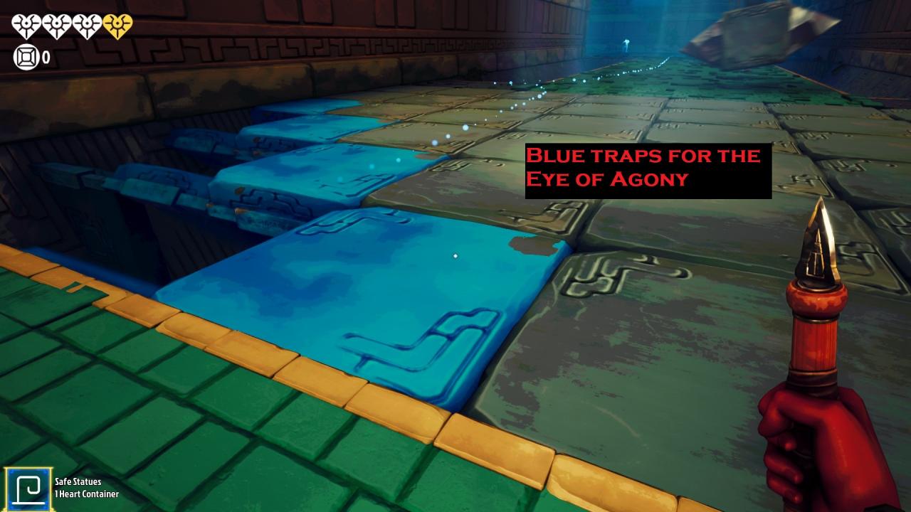 • The colored, glowing symbols on doorways on the floor also match the color of the guardian. The below door is blue, for the Eye of Agony.
