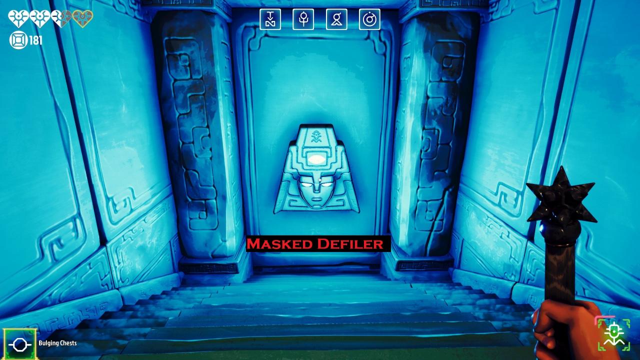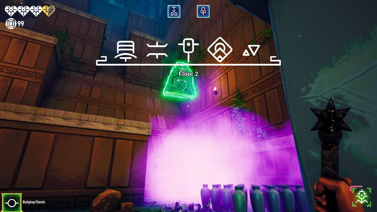 • If you’re in the final shrine room of the floor, trying to decide if you want to go to the next temple or go for the relic, and you forget which guardian you’re facing, you can see the guardian’s face on the door leading to the relic floor, see below: