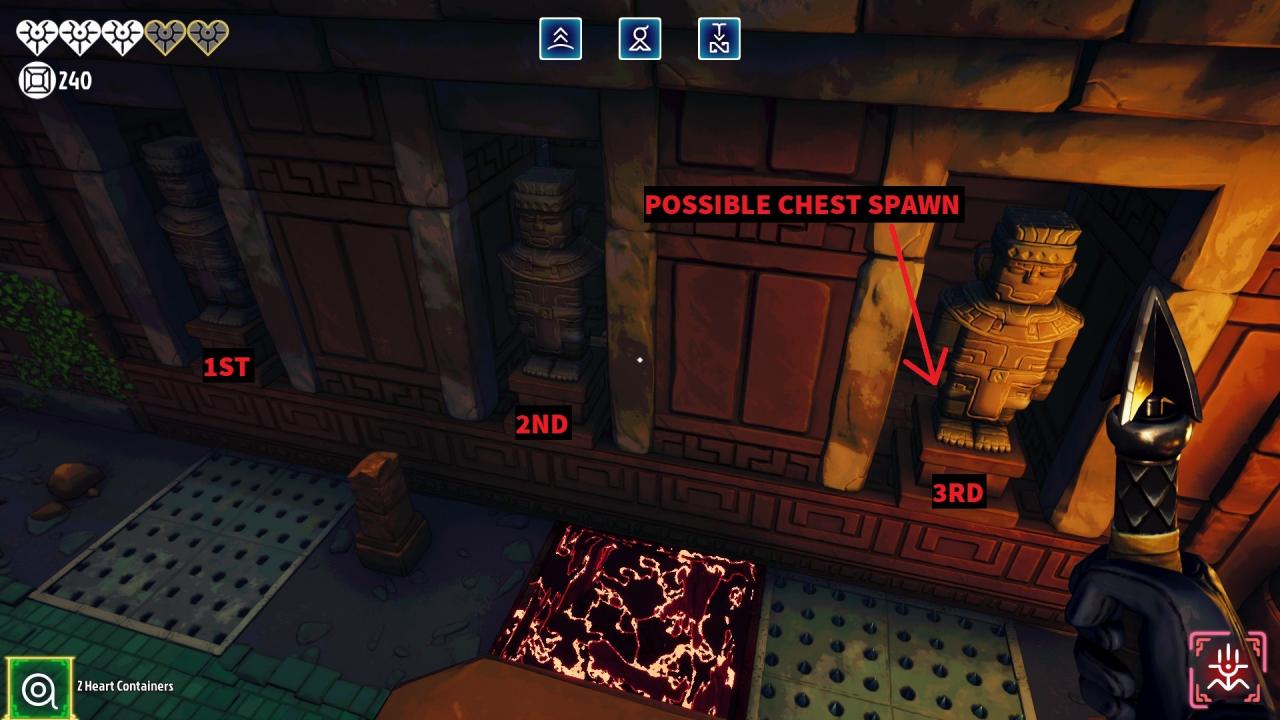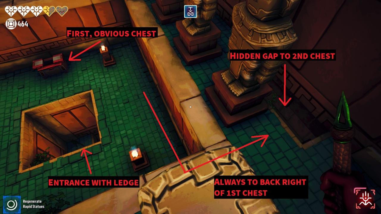 Some people are so focused on avoiding the dart statues they miss this chest which is always in the corner of the second level of this room.