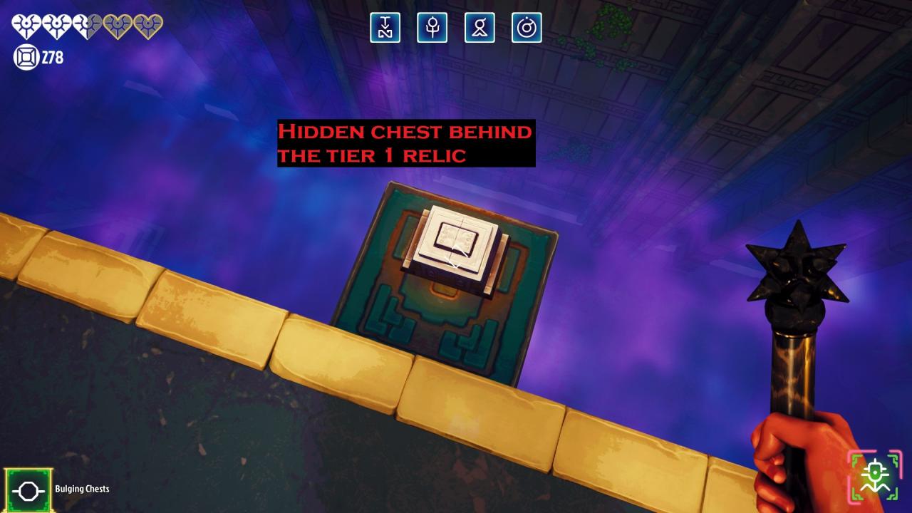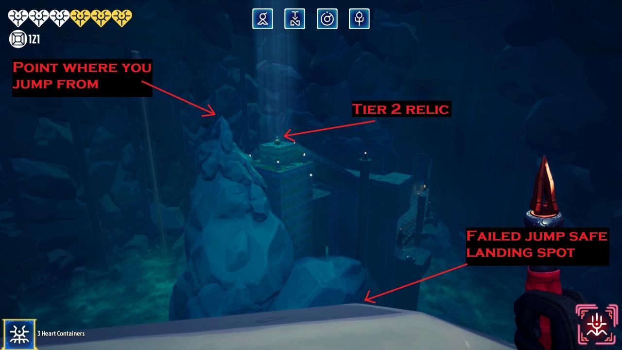 Also, while standing on the tier 1 relic platform, you can see a chest under the platform you came in on, in a cubby hole. You’ve probably found that by now but if you haven’t now you know!