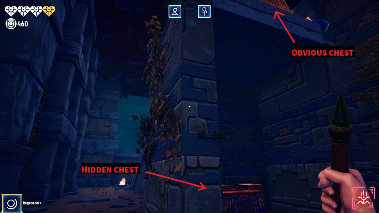 This one is kind of obvious, but I still see it missed a lot, especially when the path goes from upstairs to downstairs. Just cross the pool behind the waterfall to your right and there’s a chest over a short wall.