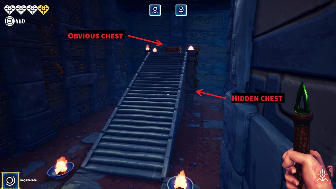 The chests aren’t really hidden, but you might not think to look for them since they’re out of the way. There can be up to 4 chests right in the main chamber of the tier 1 relic floor, so make sure to check the corners.