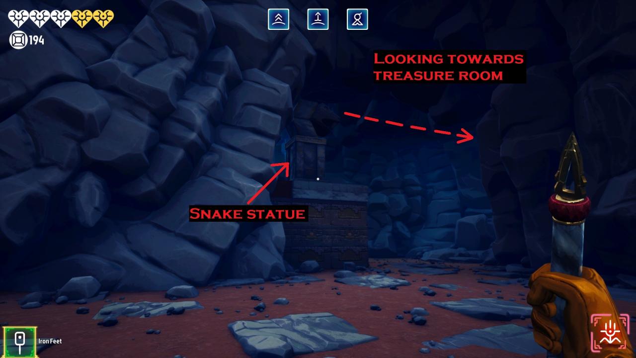 One of the cavern rooms in tier 2 has a snake statue looking towards a room with a vault, which is easy to miss if you’re in a hurry. Always check where the snake is looking, it looks like this: