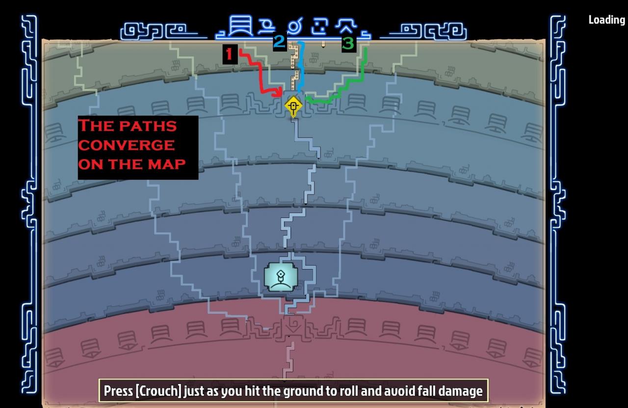 • The paths converging on the loading screen map can be seen on the first floor of each temple: