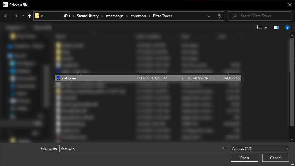 Click the folder next to Original File. Then go to your Pizza Tower folder, and select the data.win file. Then click open.