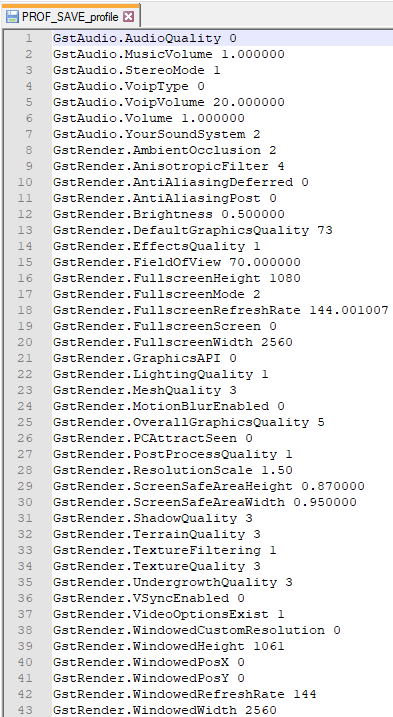 Probably the most drastic setting of all, the internal resolution option can either put your PC on it’s knees or give it that breath of fresh air it needs. This setting can’t actually be found in the file by default– instead, you have to paste in “GstRender.ResolutionScale 1.00”. You can paste it where ever you want, but after saving and booting up the game it’ll be moved below “GstRender.PostProcessQuality”. I don’t know the maximum value to this option, and I probably won’t ever know without it exploding my graphics card.
