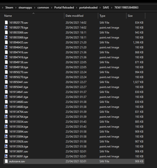- Navigate to the portalreloaded/SAVE/<somenumber> Folder