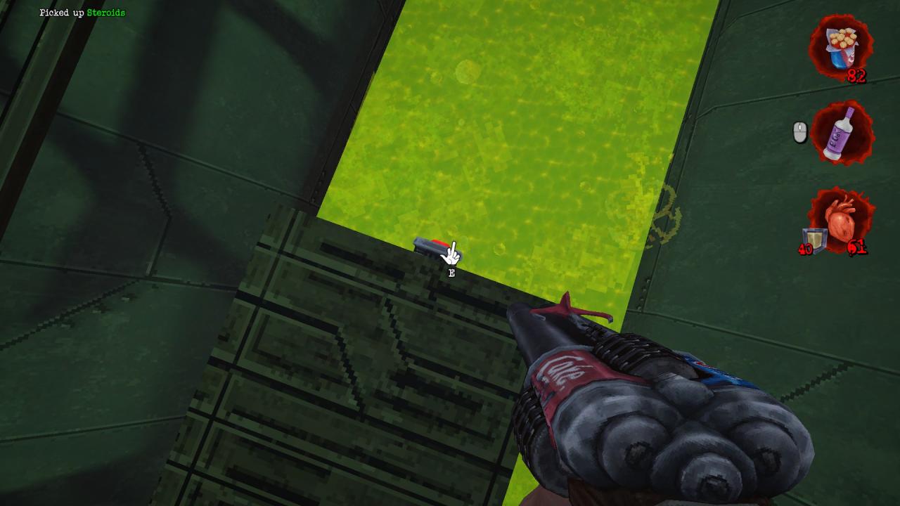 A Steroid powerup on a pillar will rise from the acid pool.