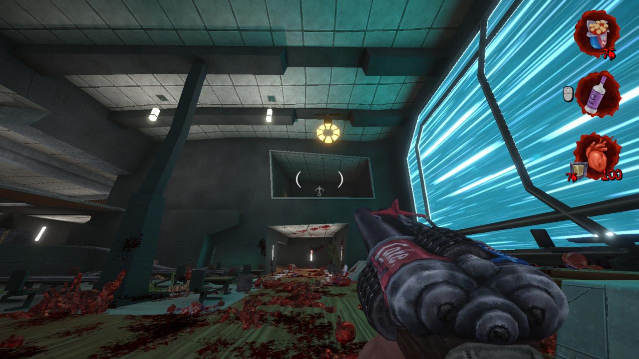 Upon reaching the top, you’ll be in a lounge area with enemies all over the place.