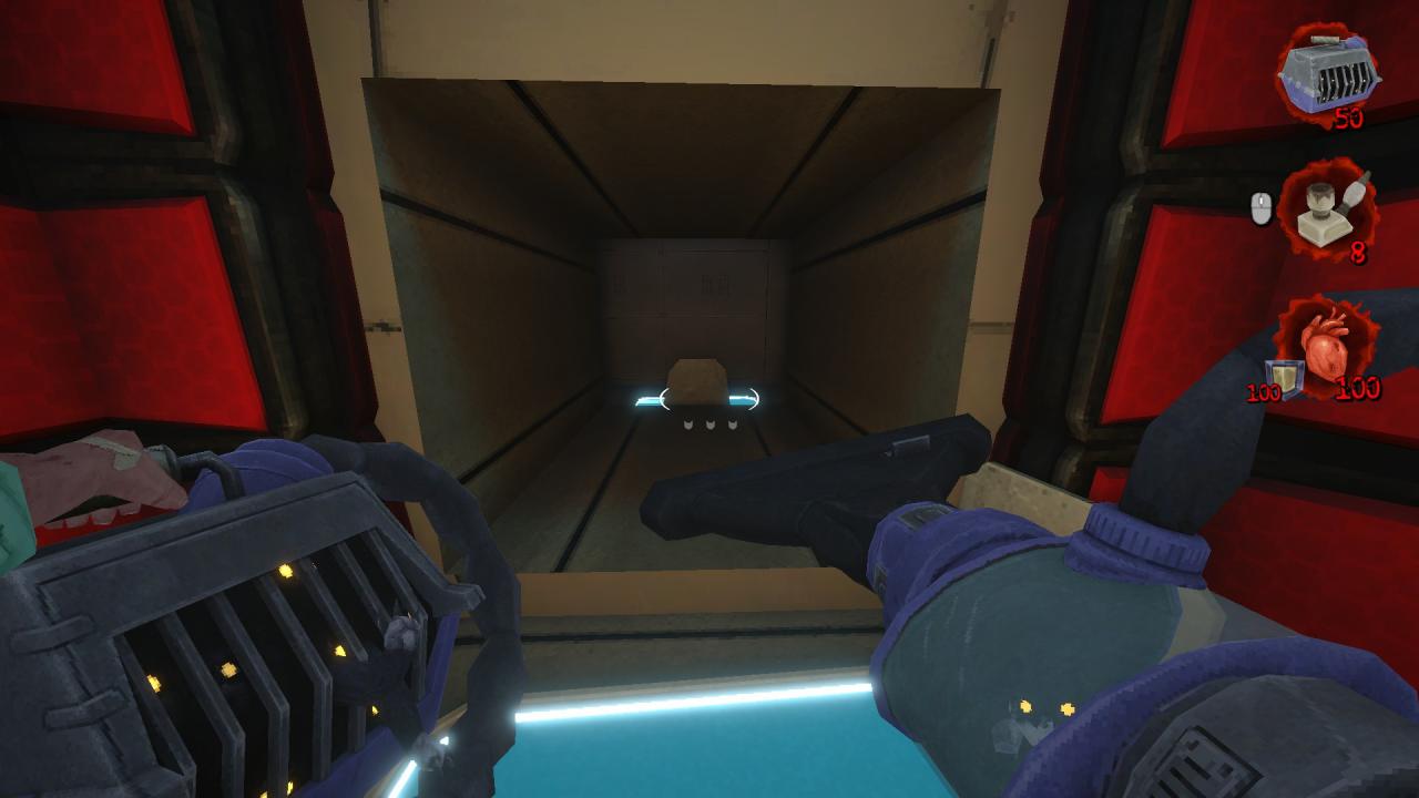 Deal with them and drop onto the lower section, you’ll see a small hallway with a blue door.