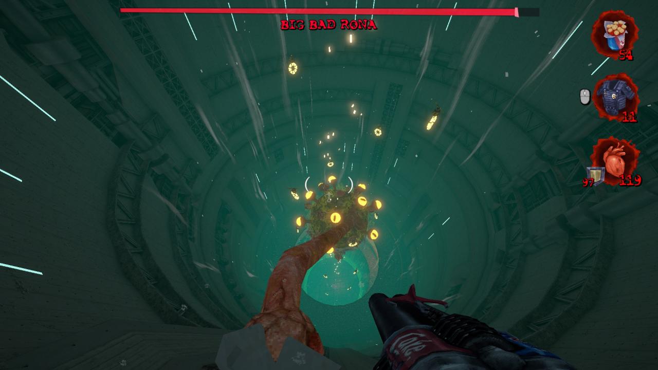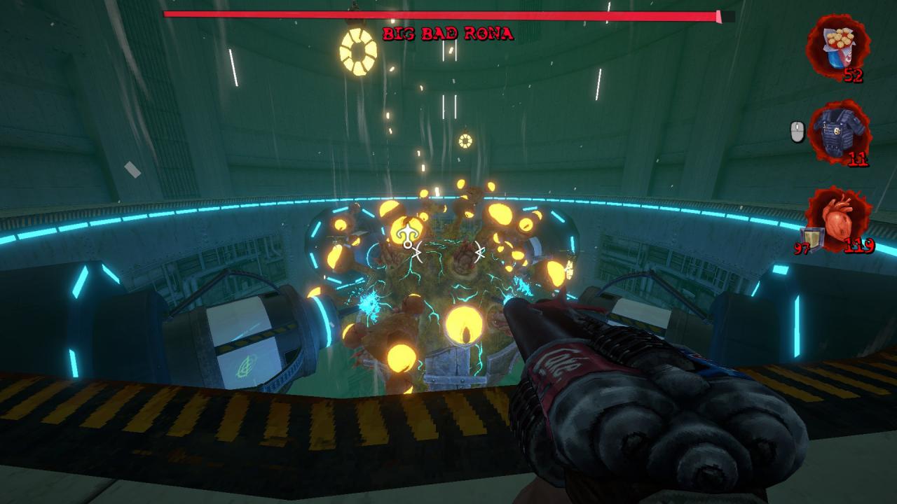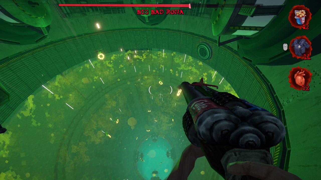 He also recommends walking on top of the Big Bad Rona then using the Double Akimbo powerup with the miniguns to easily dispatch the boss. I agree that this is one of the better ways to deal with it, but what if you don’t have the Double Akimbo powerup?