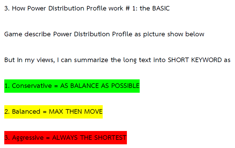 4. How Power Distribution Profile work # 2: Conservative = AS BALANCE AS POSSIBLE