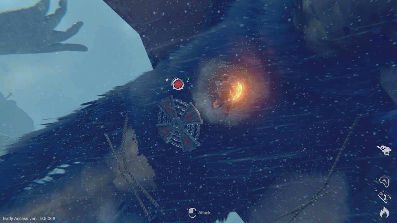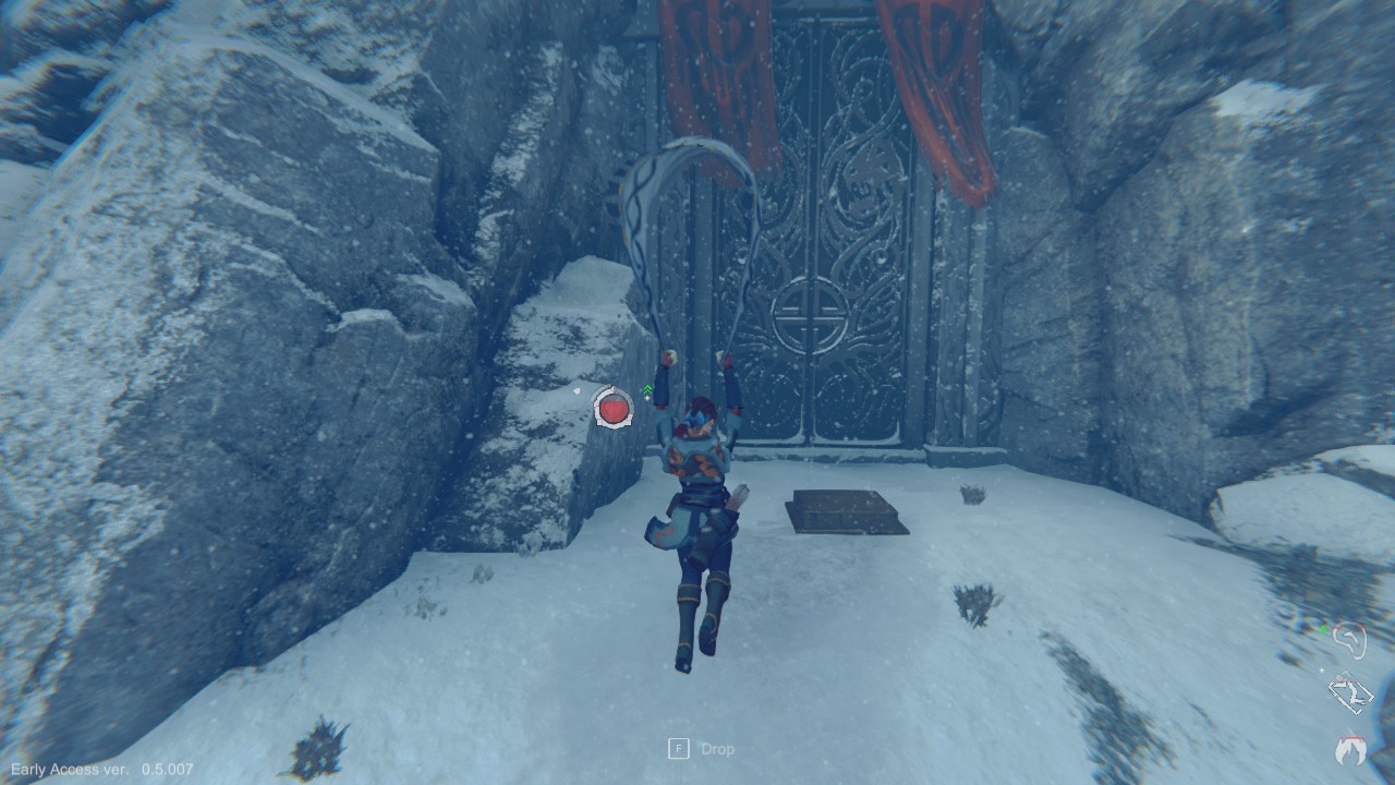 The path to the Dreki’s icy area can be found just east of the Devourer’s lake, through an area with deep snow and heavy vegetation, populated with several Deer. Run through the door-shaped hole in the blue ice and you’ll be able to continue down a short, narrow area that introduces you to the Dreki’s chain-shifting mechanics. Theres no way to get lost here, and the only way to go will lead you straight to the boss area.