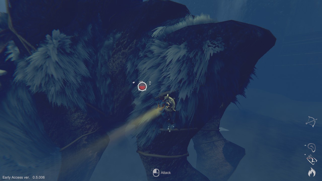 The Boar will move around the arena, either attempting to trample you or rear up on its hind legs and stomp you into the dust. It will also roar periodicially, shaking the arena and dislodging icicles from the ceiling. These will be telegraphed by a small shaft of light before they impact the ground, dealing a large amount of damage if they hit you directly, or simply knocking you down if you are too close. Of note in the arena is an Ornate Bow and three Explosive Arrows left up high on the surrounding walls of the arena, near the furthest lit up pressure plate, these will be no help against the Boar itself, but may come in handy fighting other enemies in the outside wilderness.