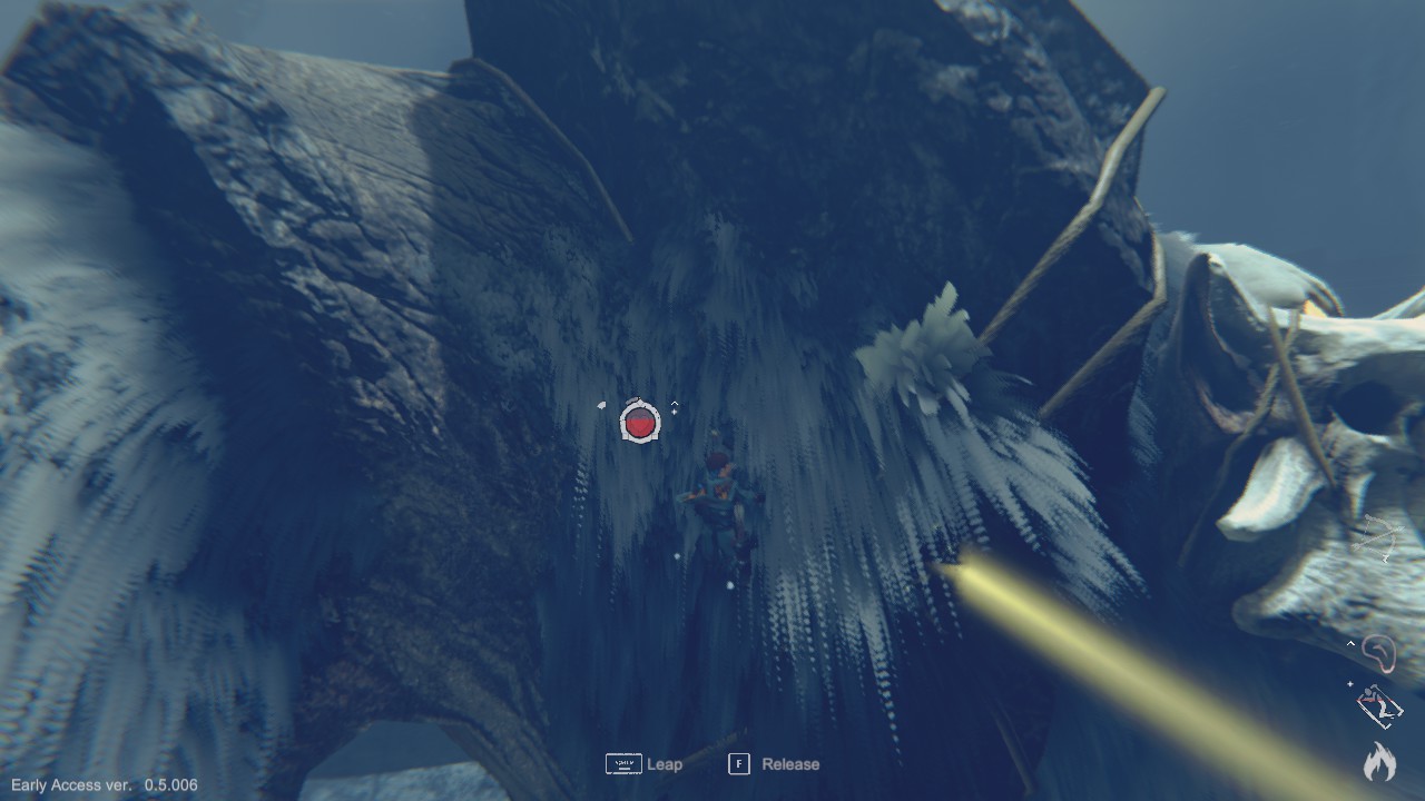 Contrasting to much of the other bosses that you’ve defeated up to this point, the Crowdragon will not actively try to shake you off, but you will still need to tap [RMB] to cling on as the sheer movement and flapping of its wings will force you to hang on tighter. Once in flight, you can attack the sigil on its tail the remaining amount of times needed, then you will be able to continue to climb up the length of its tail and upwards to its body. You wont need to hang onto the Crowdragon whilst traversing it all the time, as there are many instances where the area you need to be walking on will be flat enough for you to just walk, allowing you to regain your stamina as you do so, which is highly recommended: don’t sprint! There is a second Sigil located on the chest of the Crowdragon, it can be accessed whenever the creature is flying on its side, as you can’t climb whilst directly upside-down, though ignore it for now, as there is an easier way of getting to it. Continue onwards to its back. The remaining two Sigils are found on either wing of the creature, and are the most difficult ones to get to, as you will have to hold on tight whenever it flaps its wings – which is frequently.