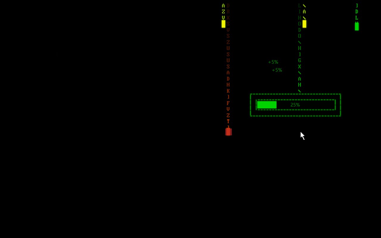 For scan progress, you’re going to need to catch a red segment, this can be done in any game type. This will take you to a blue screen with the option to use CHKPROGRESS if the timer has run down to activate it. It’s best if you play a few levels first so you know its ready or you can just wait for the timer to run down and use it. Now you will have to mash the space bar and fill up your side of the bar before the error side is full. Once done successfully, you will brought back to your game and can finish the level.